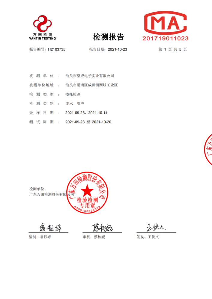 信息公开单位名称:汕头市皇威电子实业有限公司